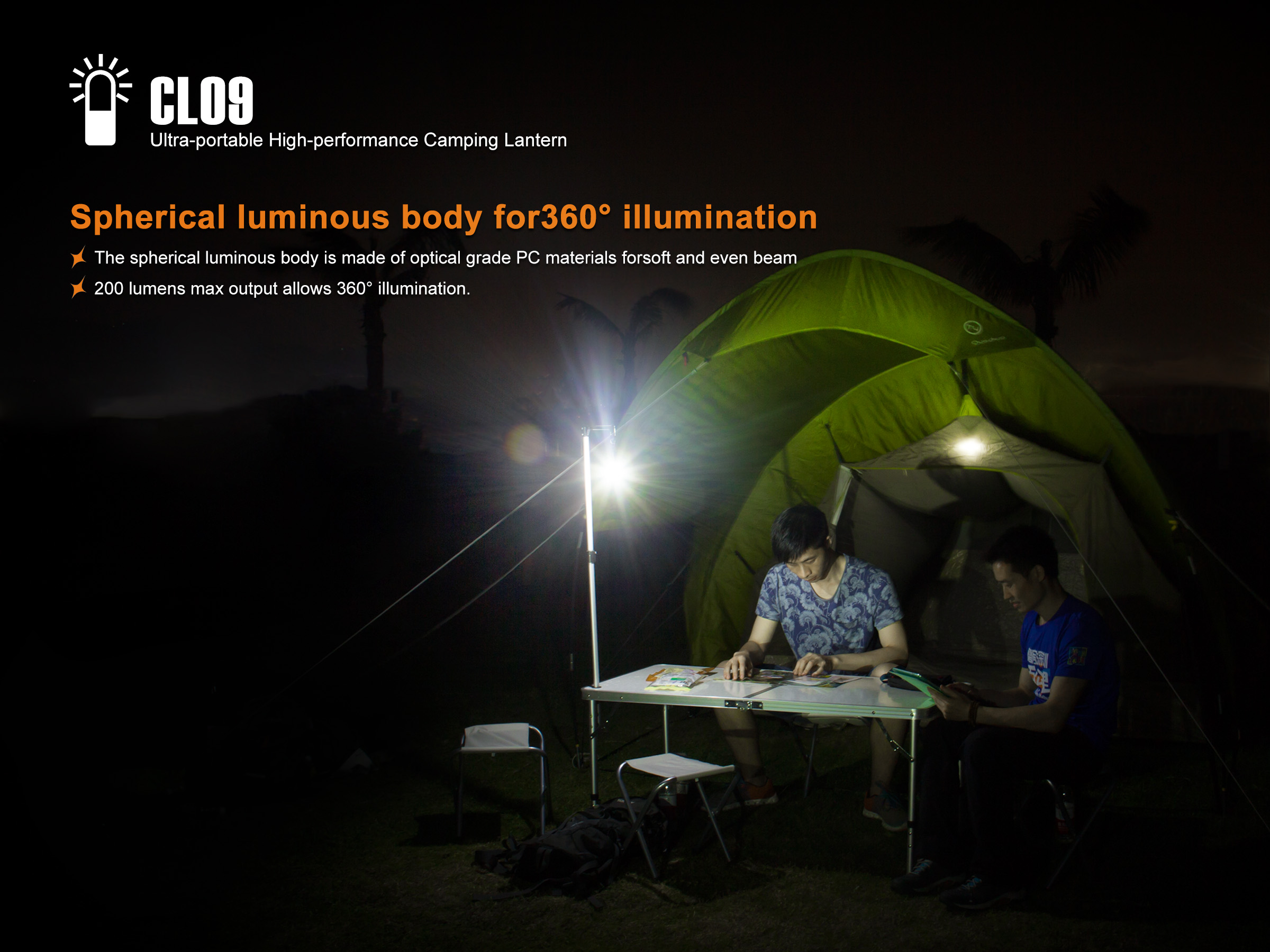 Fenix CL09 schwarz - Farb-LED Campingleuchte und Sicherheitslicht mit 200 Lumen inkl. 16340 Akku