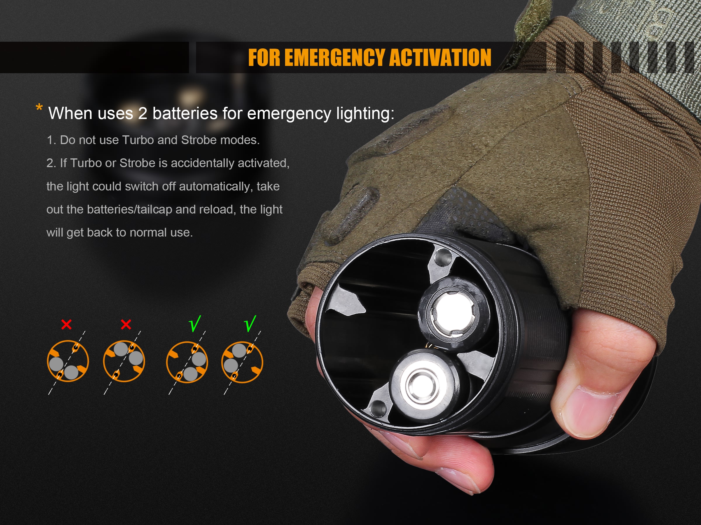 | Mode | Turbo | High | Mid | Low | Eco | Strobe | SOS |