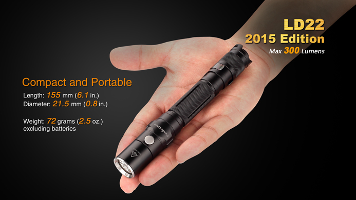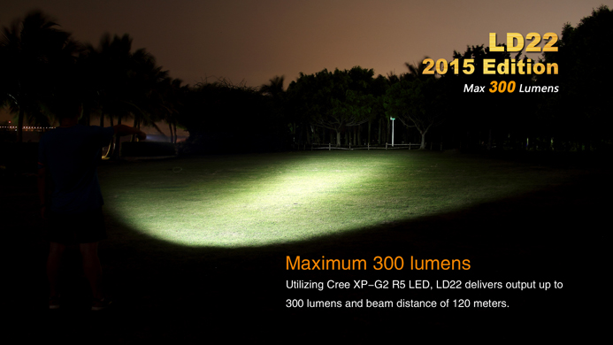 Fenix LD22 (2015) LED Taschenlampe mit 300 Lumen inkl. 2 AA Batterien