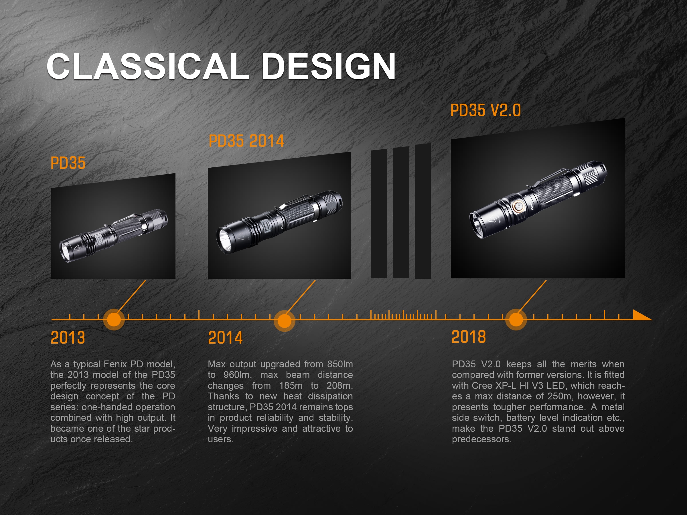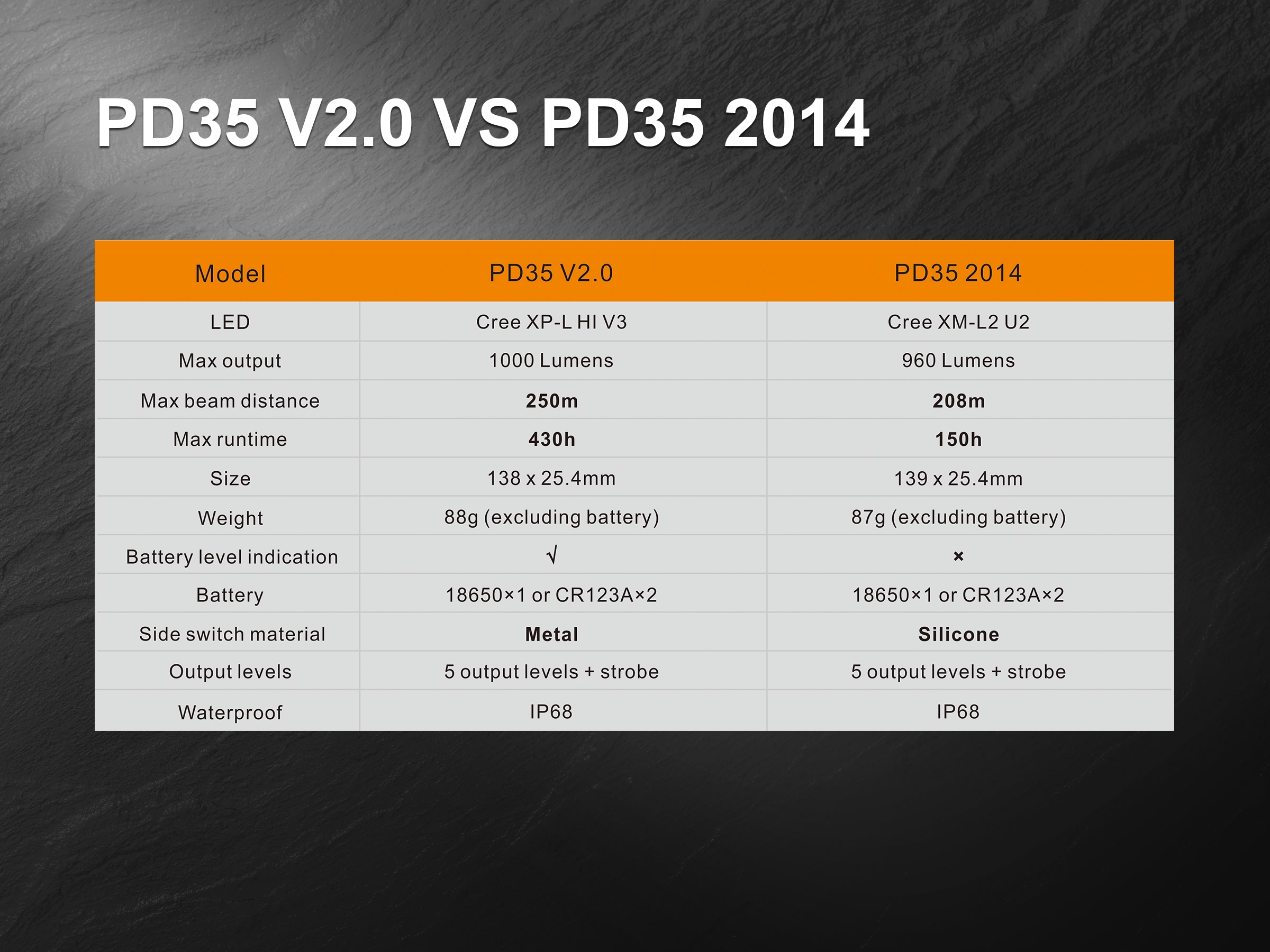 - Diese Version der Fenix PD35 V2.0 wird OHNE Batterien / Akkus ausgeliefert.