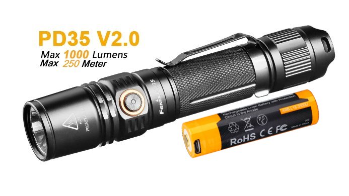 Fenix PD35 V2.0 - wiederaufladbare LED Taschenlampe, 1000 Lumen, Cree XP-L HI V3, inkl. 18650 LiIon Akku mit 3500mAh und integrierter USB-Ladefunktion
