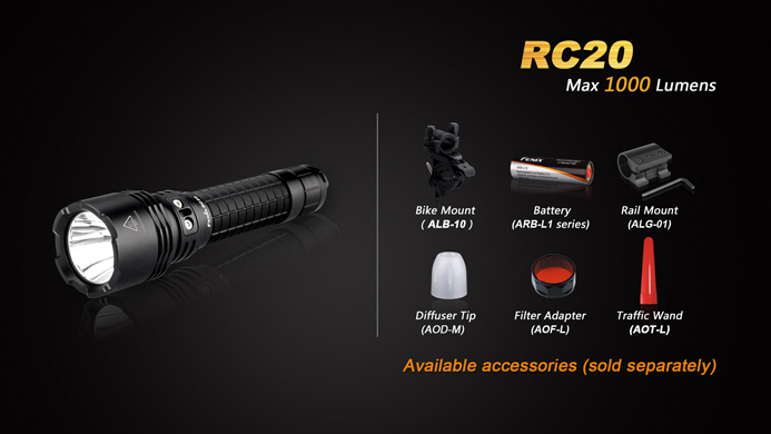 Fenix RC20 LED Taschenlampe mit 1000 Lumen inkl. Ladestation und ARB-L1 LiIon Akku mit 2.600mAh