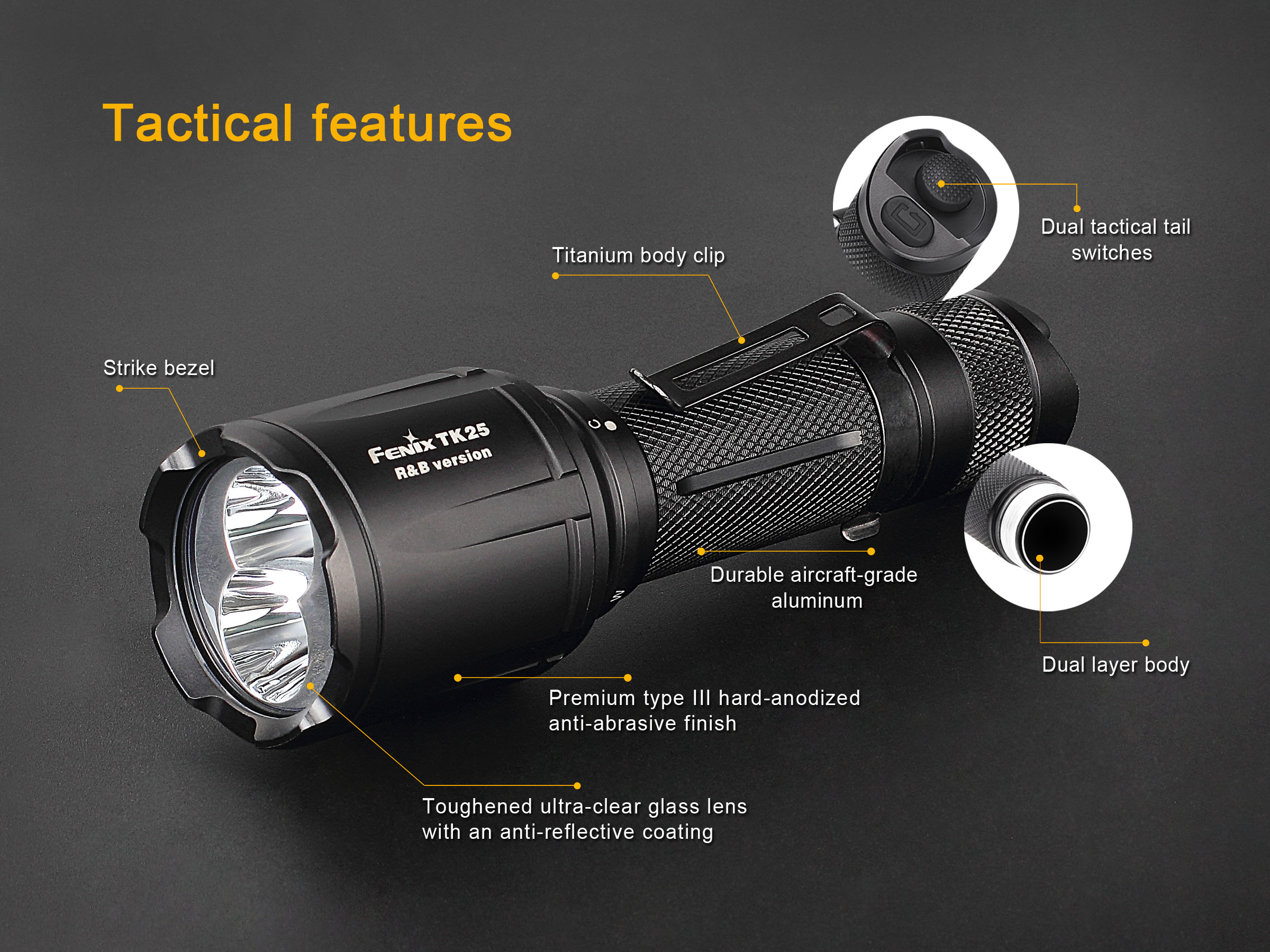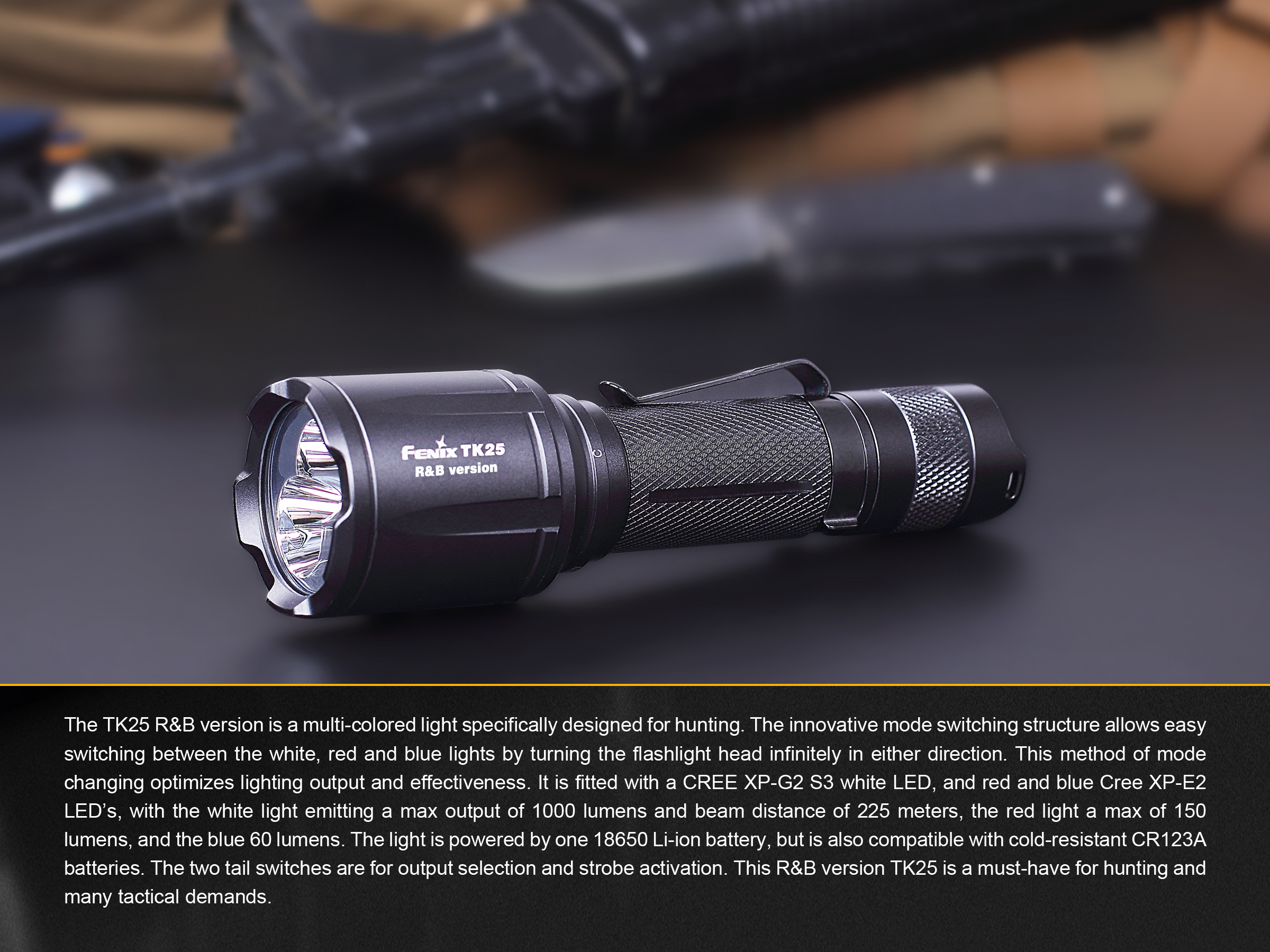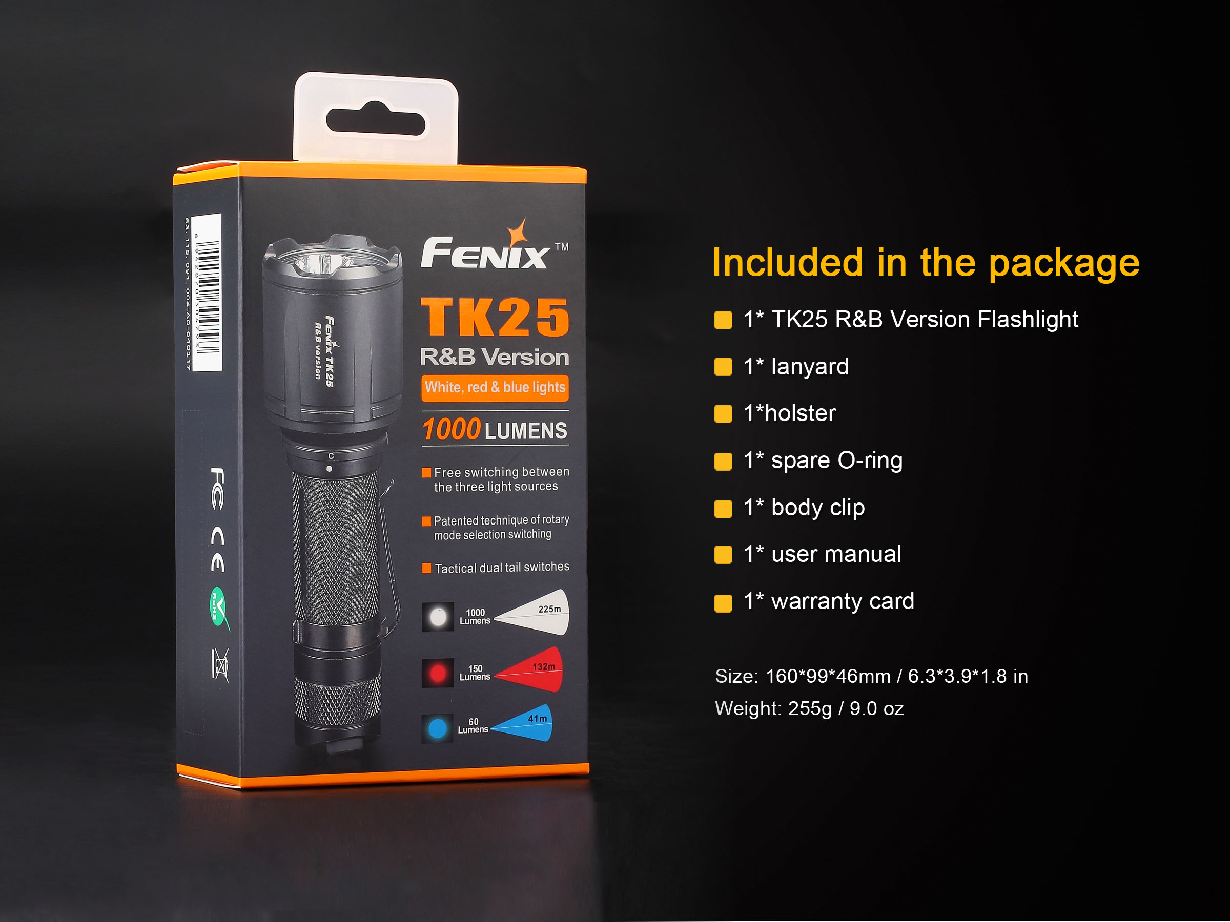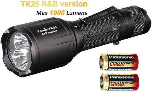 Fenix TK25R&B Taschenlampe, 1000 Lumen, Cree XP-G2 S3 weiß LED, XP-E2 rot und blau LED, 2x CR123A Batterie