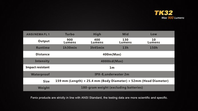 Fenix TK32 LED Taschenlampe mit 900 Lumen inkl. 2 CR123A Batterien