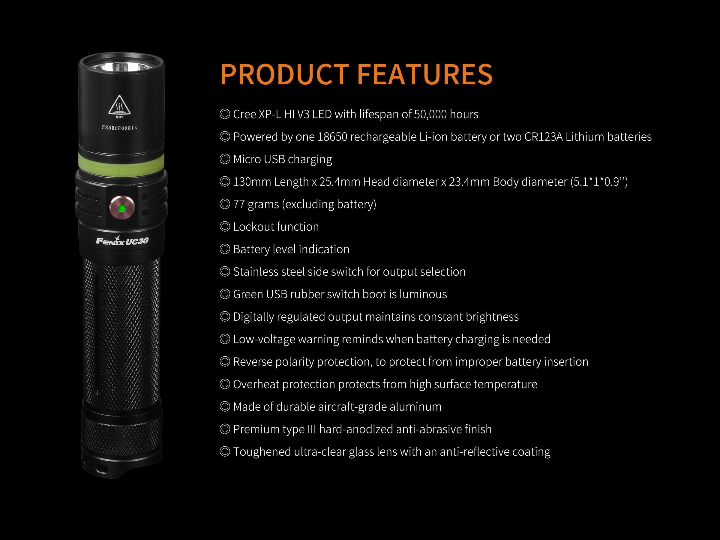 Fenix UC30 2017 wiederaufladbare LED Taschenlampe, 1000 Lumen, Cree XP-L HI V3, 18650 LiIon Akku mit 3500mAh