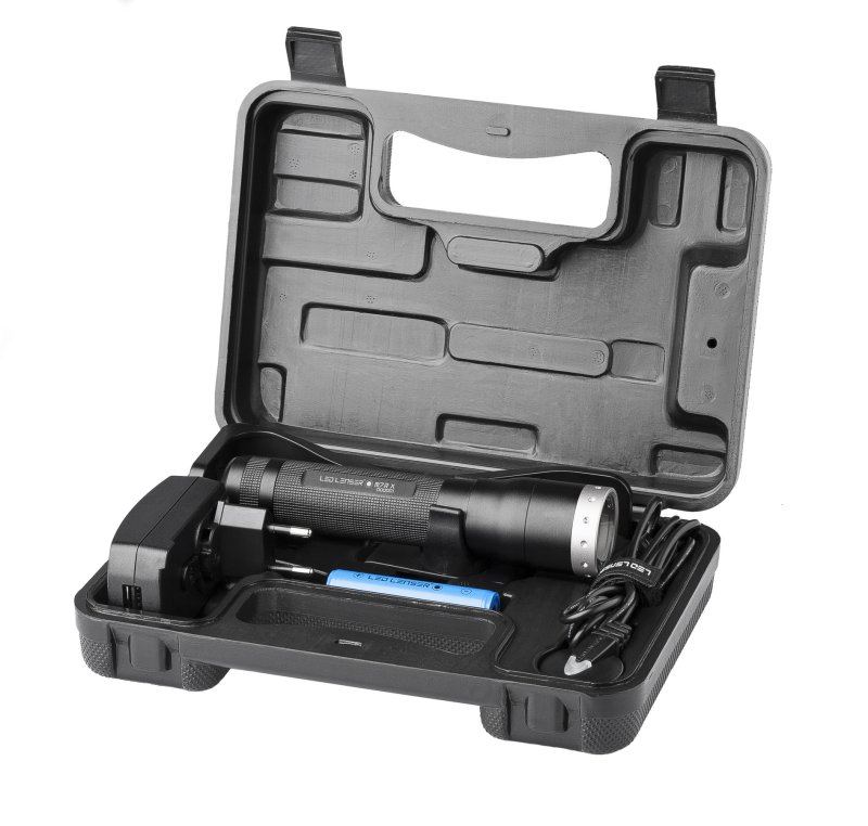 Sie haben nun folgende Möglichkeiten:Die wiederaufladbare Ledlenser M7RX LED Taschenlampe erreicht mit ihrer Power LED 600 Lumen. Das patentierte Advanced Focus System der Ledlenser M7RX mit der komfortablen Einhandfokussierung (Speed Focus) gehört zu den weltweit besten Fokussier-Systemen und bietet dank der neuen Reflektorlinse ein noch homogeneres Lichtbild, mit einer Leuchtweite von bis zu 235 Meter. Durch die Smart Light Technology stehen Ihnen acht Lichtfunktionen zur Verfügung. Die Lichtprogramme Professional, Easy und Defence fassen unterschiedliche Lichtfunktionen für bestimmte Anwendungen zusammen, so dass Sie trotz der Vielfalt den Überblick behalten. Die Steuerung erfolgt über einen einzigen Tast-Schalter. Durch den wiederaufladbaren 18650 Li-Ion Akku erreicht die Ledlenser M7RX bei voller Leistung eine Leuchtdauer von bis zu 8,5 Stunden. Das robuste Aluminiumgehäuse ist mit der IPX4 Schutzklasse gegen allseitiges Spritzwasser geschützt. Die Konstruktion und Ausstattung genügt selbst den strengen Anforderungen von Polizei, Rettungsdienst und Sicherheitsdiensten.