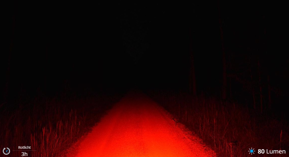 Mit dem Lupine Rotlicht wird es nun auch hinter dir taghell oder besser gesagt strahlend rot.