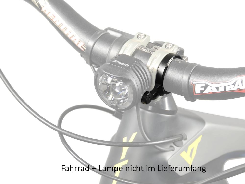 Sie haben nun folgende Möglichkeiten:Lupine Lenkerhalter, 31.8mm für die Lupine SL F E-Bike Lampe zur dauerhaften Befestigung am Lenker. Er besteht aus CNC-gefrästem und schwarz eloxiertem Aluminium und ist geeignet für 40-50mm breite Vorbauten.
