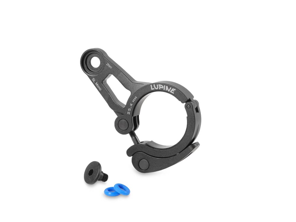 Sie haben nun folgende Möglichkeiten:Lupine Schnellspanner 25,4mm aus CnC-gefrästem Aluminium für die Lupine SL Mono zur Montage an Lenkerstangen mit passendem Durchmesser. Die Gummiauflage verhindert Kratzer am Lenker und sorgt für festen Halt ohne Verrutschen. Abstand vom Befestigungsloch der Halterschraube zum Halterrand ca. 25mm, Schellenbreite 9mm.