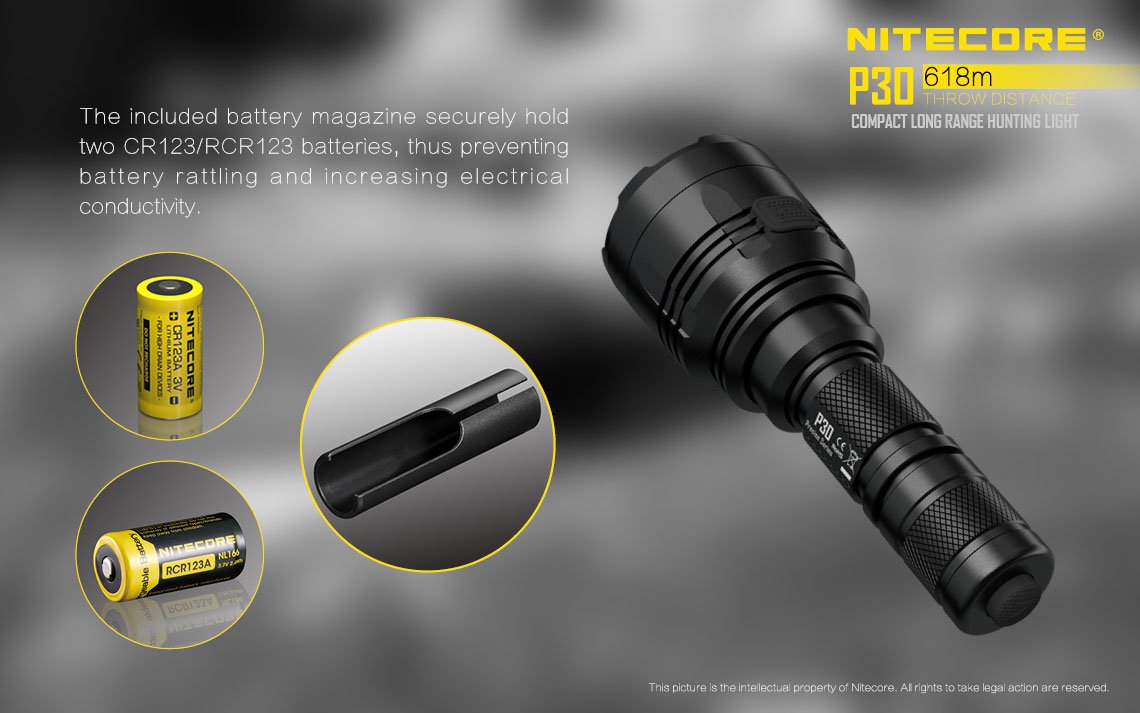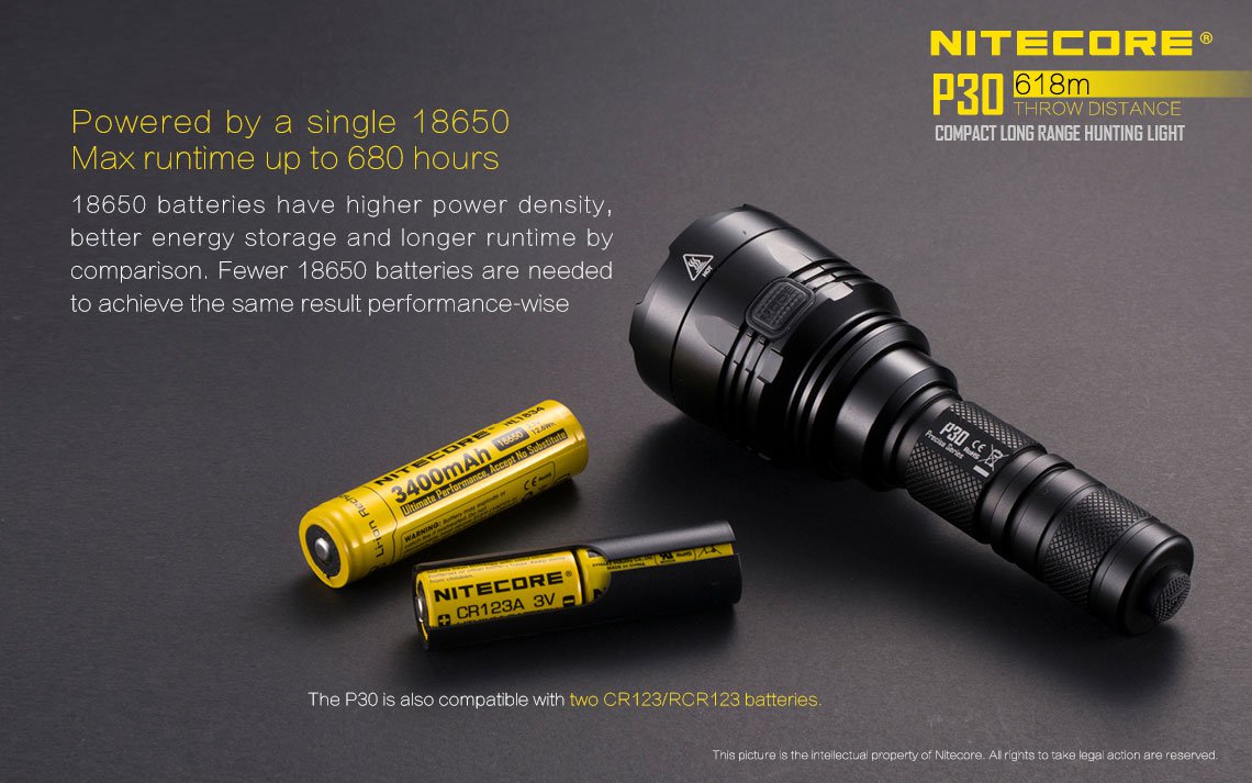 Nitecore P30 - LED Taschenlampe, 1000 Lumen, 619 Meter Leuchtweite, zwei CR123A Batterien