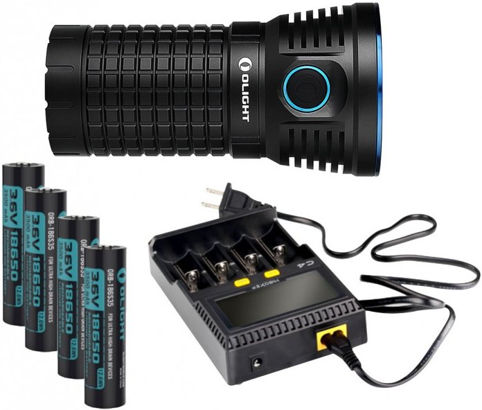 Olight X7 Marauder Kit - Taschenlampe, Cree XHP70 CW LED, 9000 Lumen, 4 x 18650 HDC Lithium Ionen Akku, Ladegerät