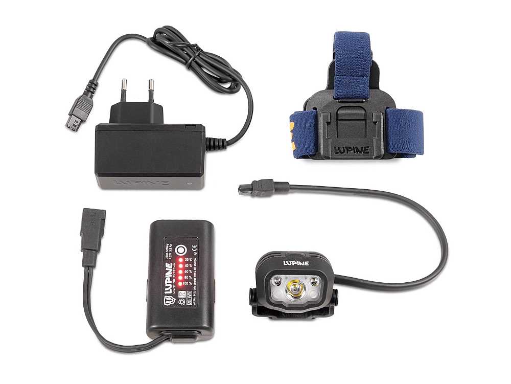 Technische HighEnd Lösungen für maximale Performance: Wie alle Lampen von Lupine setzt auch die Lupine Penta Pro auf technische Lösungen, die in der gebotenen Qualität weit über den Mitbewerbern liegen: Angefangen bei dem äußerst robusten und aufwändig gefrästen Aluminium Gehäuse, das nicht nur mit besonders hochwertiger Verarbeitung glänzt, sondern gleichzeitig auch als leistungsfähiger Kühlkörper dient. In Zusammenspiel mit den beiden Temperatursensoren und einem intelligenten Echtzeittemperaturmanagement, erreicht die Lupine Penta Pro auch in schwierigen Umgebungen stets die maximale Performance und zeichnet sich durch eine unvergleichliche Zuverlässigkeit aus. Auch die speziell selektierten LEDs in höchster Qualitätsstufe gehören zu den Features. Bei der Lupine Penta Pro kommen insgesamt fünf davon zum Einsatz, die spezifisch aufeinander abgestimmt sind, um das erstklassige Leuchtbild zu erzeugen, natürlich ganz ohne den irritierenden und äußerst störenden 3D-Effekt, den oftmals billige Stirnlampen aufweisen. Abgerundet wird das Komplettsystem durch die proprietären HardCase- oder SmartCore-Akkus (je nach Version), die maßgeblich für die Leistungsentfaltung und die ausgiebige Leuchtdauer verantwortlich sind, ausgestattet mit den besten Akku Zellen auf dem Markt und mehrfach vorgetestet für die maximale Langlebigkeit und Kapazität.