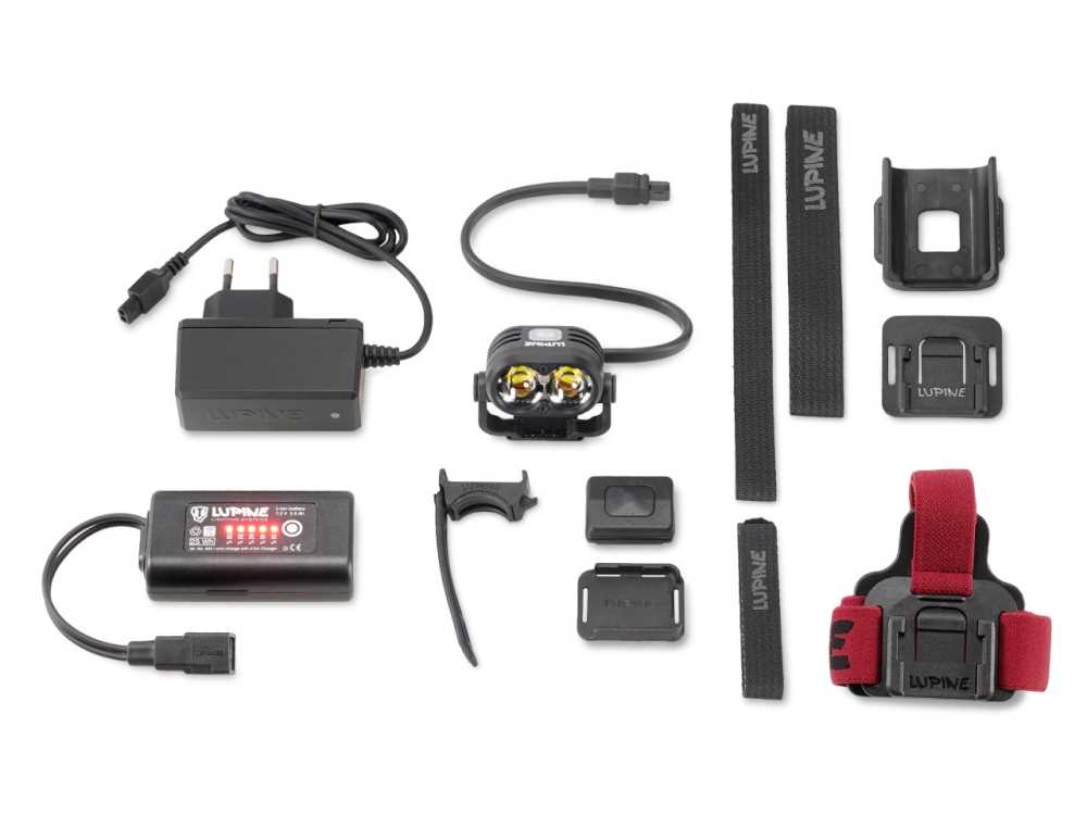 Die Lupine Piko mit 2100 Lumen im praktischen All-in-One-Set. Hier muss sich nicht zwischen Helm oder Stirnlampe entschieden werden. Das Paket umfasst neben dem Lampenkopf Lupine Piko ein Stirnband, Helmhalter, Akku, Bluetooth Fernbedienung, Ladegerät und Anleitung. Durch das FrontClick System kann der Lampenkopf schnell vom Stirnband auf den Helm (mit Lüftungsschlitzen) und wieder zurück gebaut werden. Der 3.5 Ah SmartCore Akku wird per FastClick System direkt am Stirnband bzw Helm getragen, zeigt auf Knopfdruck die verbleibende Restkapazität an und dient zusätzlich als Signallicht. Kabellänge am Lampenkopf ca. 25cm.