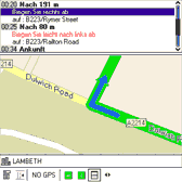 Bei vorhandenem GPS-Modul* wird überdies die Route in Echtzeit entsprechend Ihrer aktuellen Position neu berechnet und ggf. angepasst und die Karte entsprechend der Bewegungsrichtung gedreht. Alle erforderlichen Angaben zur Route sind abrufbar (verbliebene Distanz, nächste zu nehmende Abfahrt usw.), und die Sprachausgabe geleitet Sie klar und deutlich an Ihr Ziel ? und verwandelt damit Ihren PDA in ein echtes Onboard-Navigationssystem! * Diese Funktion erfordert ein NMEA 2.0-kompatibles GPS-Empfangsmodul auf WGS84-Grundlage |