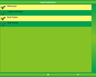 - Sperrung von Maut und gebührenpflichtigen Strassen, Autobahnen, Fähren, Autozüge und kleinen Nebenstrassen möglich