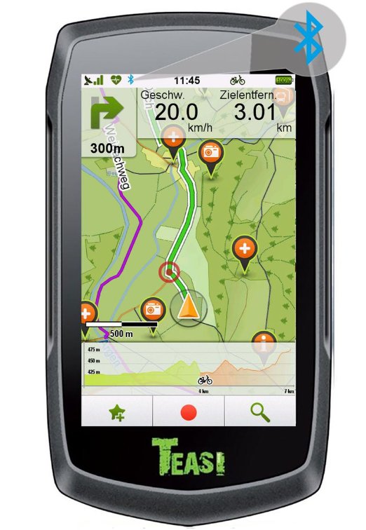 Das Teasi one 3 ist ein Freizeit-Navi für Radler und Wanderer. Das One 3 verfügt über Bluetooth, eine sehr gute Akkulaufzeit und ein Audiosignal für Navigationsanweisungen. Ganz gleich, ob im Großstadt-Dschungel oder auf abgelegenen Bergpfaden, das Teasi one 3 zeigt Ihnen den Weg. Eine gut durchdachte Menüführung und eine einfach gestaltete Benutzeroberfläche machen das Teasi one 3 zu einem kinderleicht bedienbaren Navigator für Radfahrer und Wanderer. Keine komplizierte und zeitaufwendige Einrichtung das Navi ist direkt nach dem Auspacken einsatzbereit.