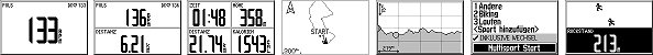 | Auto Pause®: | Automatische Pause der Trainingsuhr, wenn man langsamer als eine voreingestellte Geschwindigkeit wird. Erneuter Anlauf der Uhr bei Überschreitung dieser Geschwindigkeit. |