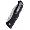 Zweifellos gehört Cold Steel zu den führendsten Herstellern sicherer und zugleich starker Klappmesser auf unserem Planeten. Dies ist eine von vielen Vorteilen, welche Cold Steel von seinen Mitbewerbern unterscheidet. Cold Steels neueste Verbesserung ist die zum Patent angemeldete Tri-Ad®-Arretierung. Entwickler dieses neuen Tri-Ad® Verriegelungs-Mechanismus ist Andrew Demko. Es basiert auf einem älteren Patent des sehr talentierten Erfinders John PerMar, der Arretierstift: Die Grundlage für die Stärke des Tri-Ad®-Systems, neben anderen Verfeinerungen, ist die Anwendung eines neuartigen Arretierstiftes, welcher die Belastungen der positiven und negativen, vertikalen Drücke, die das Schloss aufnehmen muss, neu verteilt. Der Arretierstift nimmt sämtlichen positiven Druck auf, überträgt ihn auf den Griffrahmen und die Füllung, wo er effektiver abgeleitet werden kann. Negative Drücke, erzeugt z.B. durch Hebeln, Graben oder Bohren werden abgeleitet, weil der Arretierstift vom Kipphebel Gegendruck erhält und diesen in die Griffschalen ableitet. Kipphebel und Drehpunkt können somit nicht nachgeben.