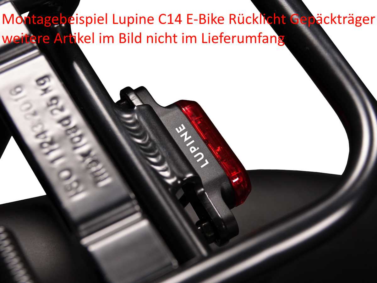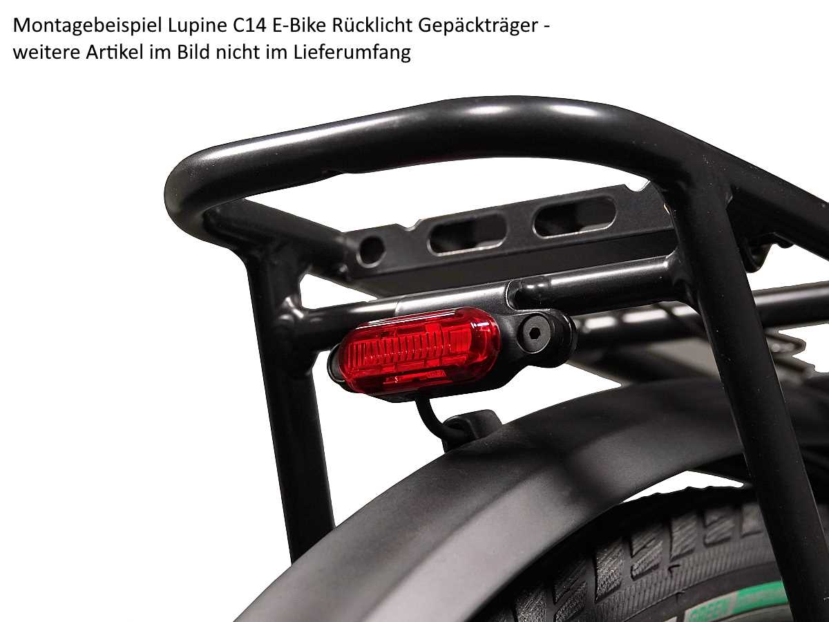 Lupine C14 G - Rücklicht mit Bremslichtfunktion zur Gepäckträgermontage für E-Bikes mit Shimano Motor (offenen Litzen)