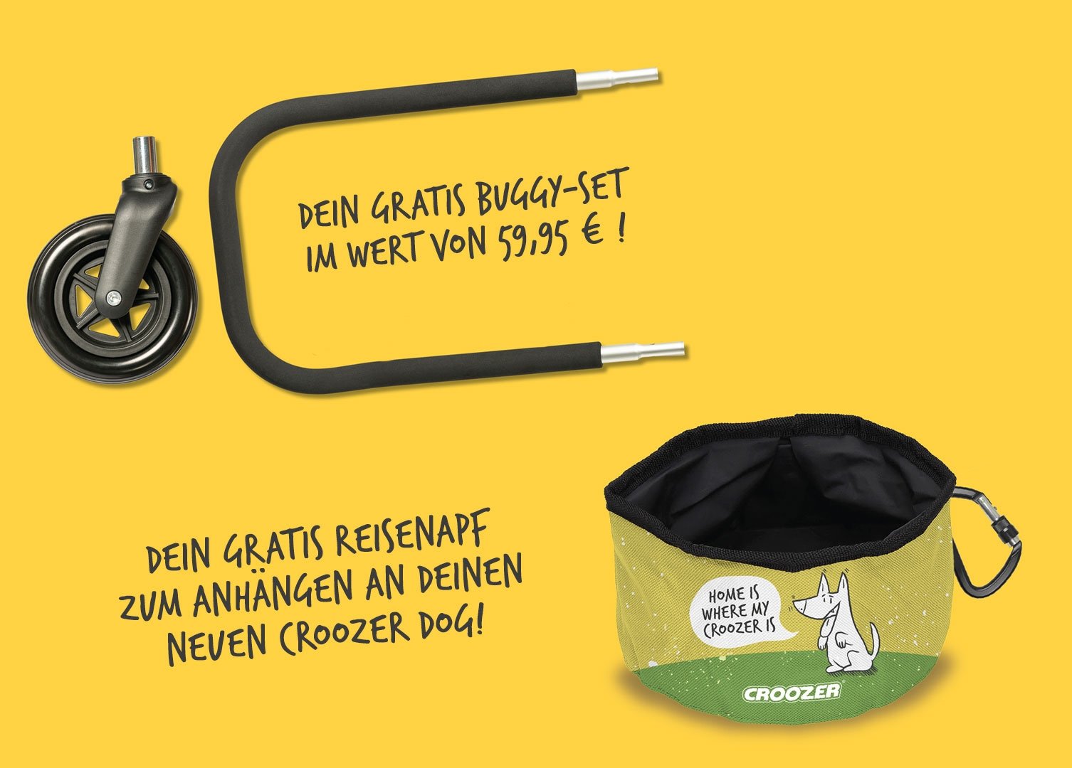 Sie haben nun folgende Möglichkeiten:Bei diesem Set ist außer dem Welpenschutz auch noch ein Buggy-Set und ein Reisenapf enthalten. Endlich kannst Du Deinen großen, vierbeinigen Freund überall hin mitnehmen! Der Croozer Dog XXL ist der erste Hundeanhänger, der speziell für große Hunde und für Hunde mit Handicap entwickelt wurde. Durch Reißverschlüsse an der Fensterfront kann Dein Hund die Nase in den Wind halten und er hat Frauchen oder Herrchen immer im Blick.