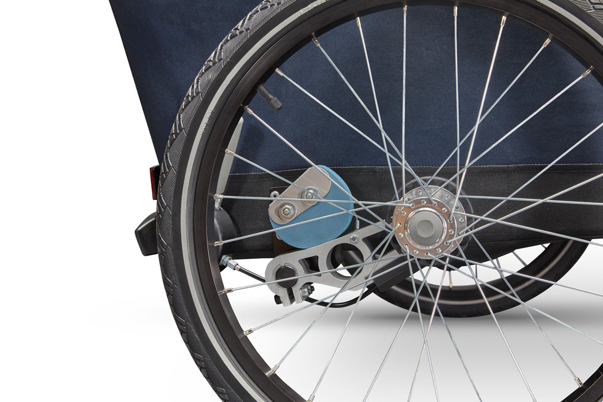- Fahrrad-Set: 2 Achskupplungen, Deichsel mit abschließbarem Deichselkopf (3 Schlüssel), Sicherheitswimpel