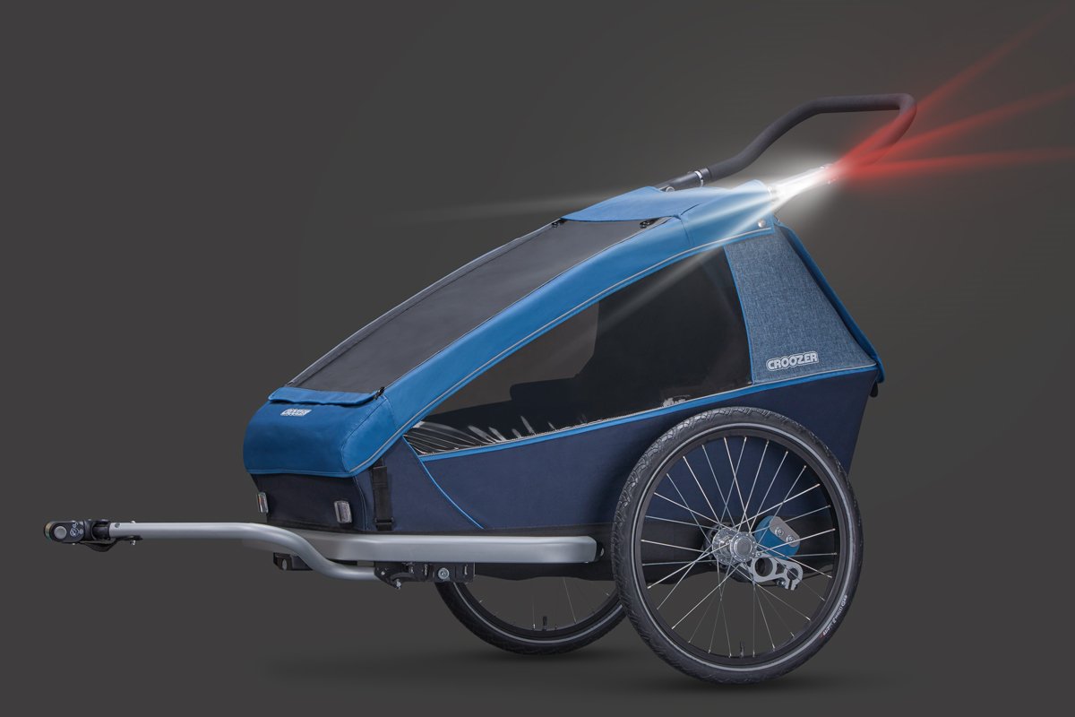 Croozer Kid Plus for 2 (Modell 2019) - Kinderfahrradanhänger mit Fahrrad-Set, Buggy-Set und Jogger-Set, Sensorlicht