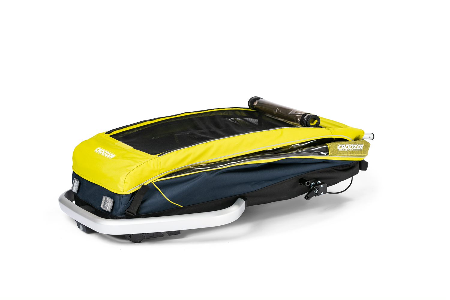 Der Croozer Kid for 1 (Modell 2019) ist ein Kinderfahrradanhänger für ein Kind. Der Croozer Kinderanhänger ist mit allen Sicherheitsmerkmalen für Ihr Kind ausgestattet: Sicherheits-Fahrgastzelle, Stoßstange, Überrollbügel und 5 Punkt Sicherheitsgurt. Mit dem optionalen Babysitz (Hängematte) können Sie Ihr Kleines ab dem 1. Monat mitnehmen. Im Lieferumfang des Kid for 1 sind zwei Fahrrad-Kupplungen und das Fahrradset um ihn an zwei Fahrräder nutzen zu können. Ein Buggyset um Ihn als normalen Buggy als Fußgänger und den Einkauf zu nutzen. Und ein Joggerset für die Sportlichen Aktivitäten oder für das unwegsame Gelände beim Wandern oder Tracking.