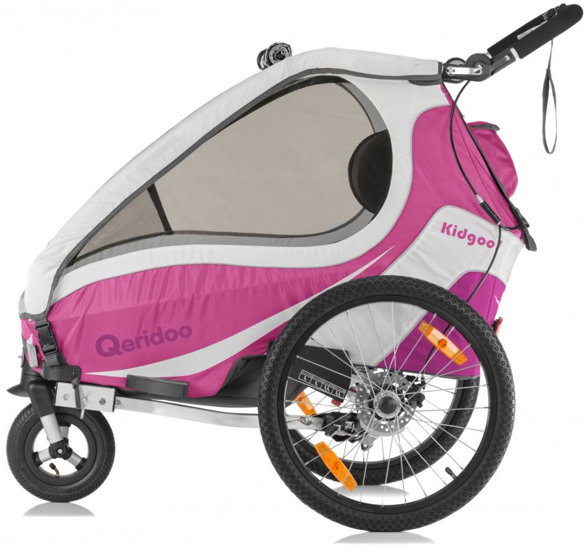 Qeridoo KidGoo1 Sport 2017 pink - Kinderfahrradanhänger mit Federung, Scheibenbremsen und Buggyrad mit Jogger-Funktion