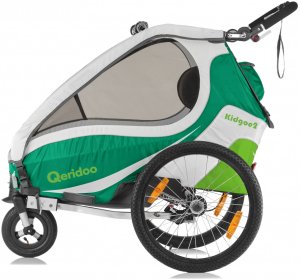 Qeridoo KidGoo2 2017 grün - Kinderfahrradanhänger mit Federung, Feststellbremse und Buggyrad mit Jogger-Funktion