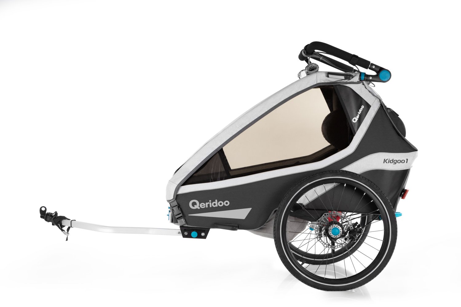 Der Qeridoo KidGoo 1 Pro ist ein voll gefederter Kinderfahrradanhänger mit Scheibenbremsen und Joggerrad für 1 Kind. Der Qeridoo KidGoo 1 Pro ist ein echtes Multitalent und sticht bereits in der Grundausstattung mit zusätzlichem Komfort und Sicherheitsfunktionen hervor. Besonders der große Kofferraum mit praktischen Magnetverschlüssen spricht für sich. So eignet sich der Qeridoo KidGoo 1 Pro auch optimal als Begleiter, wenn Sie mehr Gepäck dabeihaben. Das Komfort-Sicherheitssystem mit adaptivem Rückhaltesystem (easy-ARS) ermöglicht die individuelle und leicht zu bedienende Anpassung der Sicherheitsgurte auf Ihr Kind. Die BDS-Federung sorgt für maximalen Komfort im Inneren der Kabine.