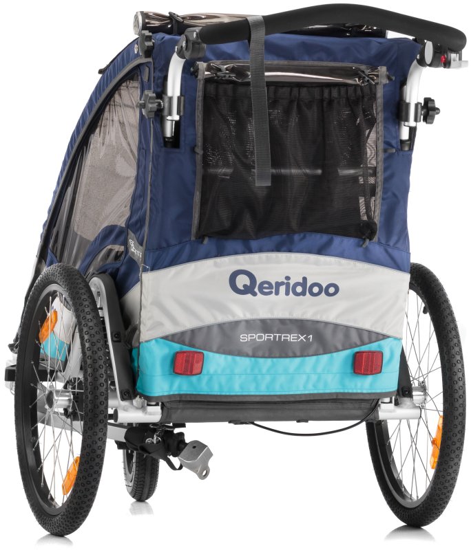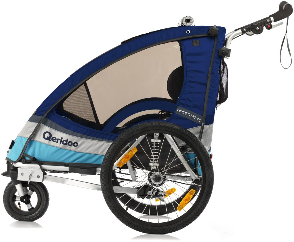 Qeridoo Sportrex1 2017 blau - Kinderfahrradanhänger mit Federung, Feststellbremse und Buggyrad mit Jogger-Funktion