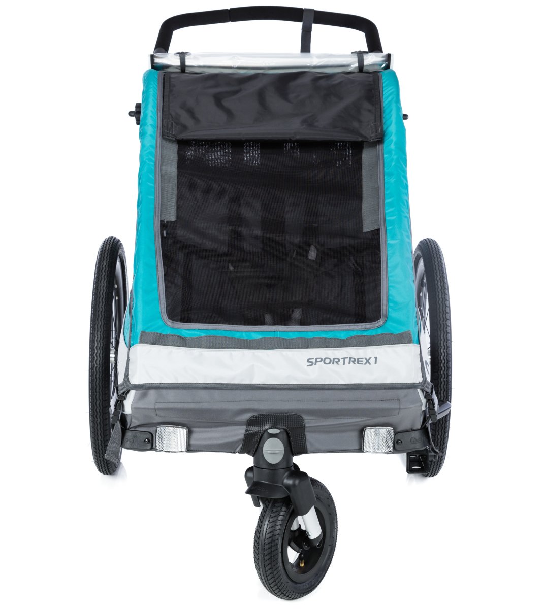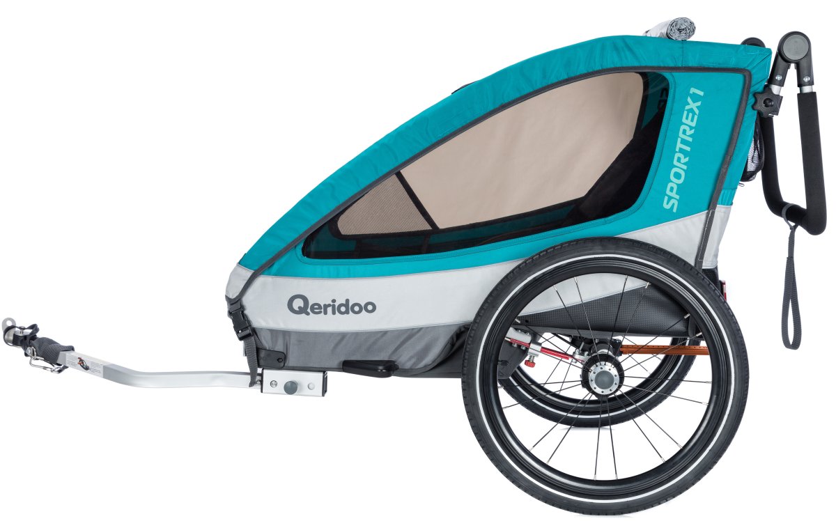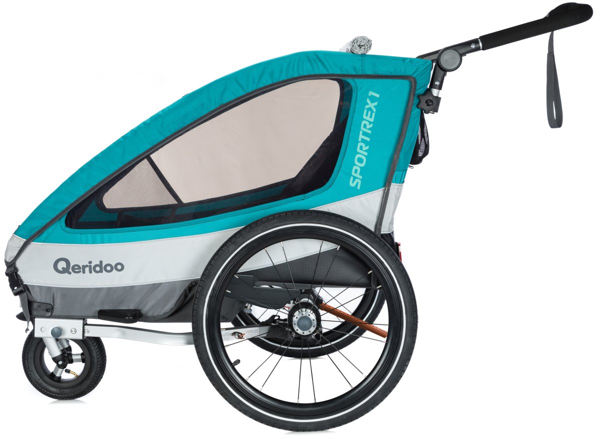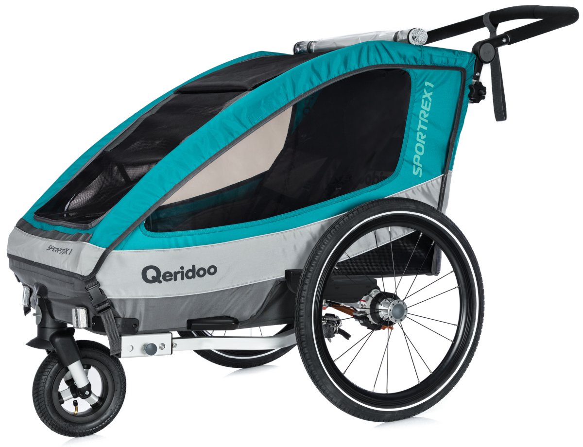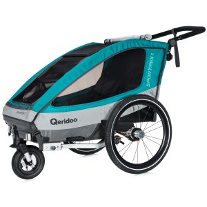 Qeridoo Sportrex1 2018 Q3-18-A aquamarin - Kinderfahrradanhänger mit Federung, Feststellbremse und Buggyrad mit Jogger-Funktion