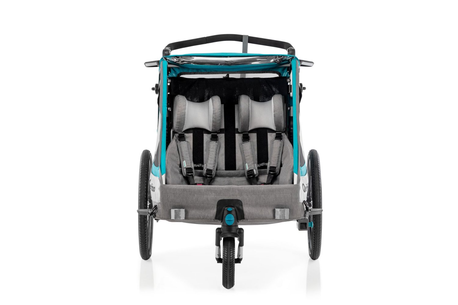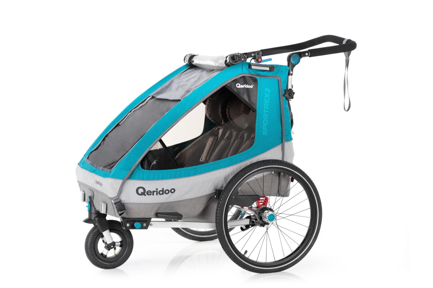 Qeridoo Sportrex2 Q-SR1-21-P petrol - Kinderfahrradanhänger mit Federung, Hand-Parkbremse und Buggyrad