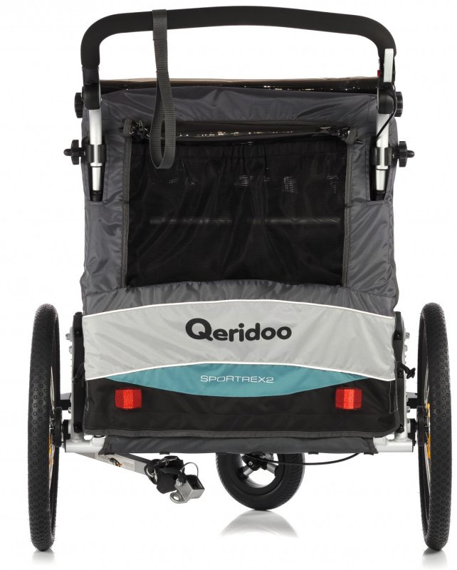 Der Qeridoo Sportrex2 2017 ist ein Kinderfahrradanhänger für zwei Kinder. Der Anhänger ist mit einer einstellbaren Sprungfederung und Feststellbremse ausgestattet. Die Fahrradkupplung und ein Buggyrad mit Jogger-Funktion gehören zum Lieferumfang. Das FX-Klappsystem ermöglicht ein einfaches Zusammenfalten des Qeridoo Sportrex2 2017 mit nur einer Handbewegung. Den leichten und sicheren Qeridoo Sportrex2 2017 kann man dank des großen Lieferumfangs als Babyjogger, Kinderwagen oder Fahrradanhänger nutzen.