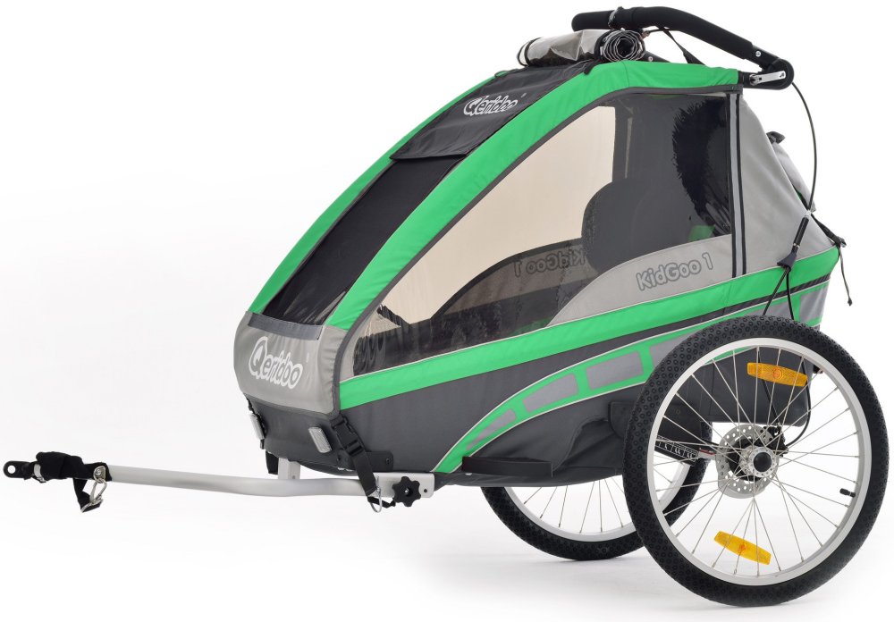 Qeridoo KidGoo-1 grün - Kinderfahrradanhänger mit Federung, Scheibenbremsen und Buggyrad mit Jogger-Funktion
