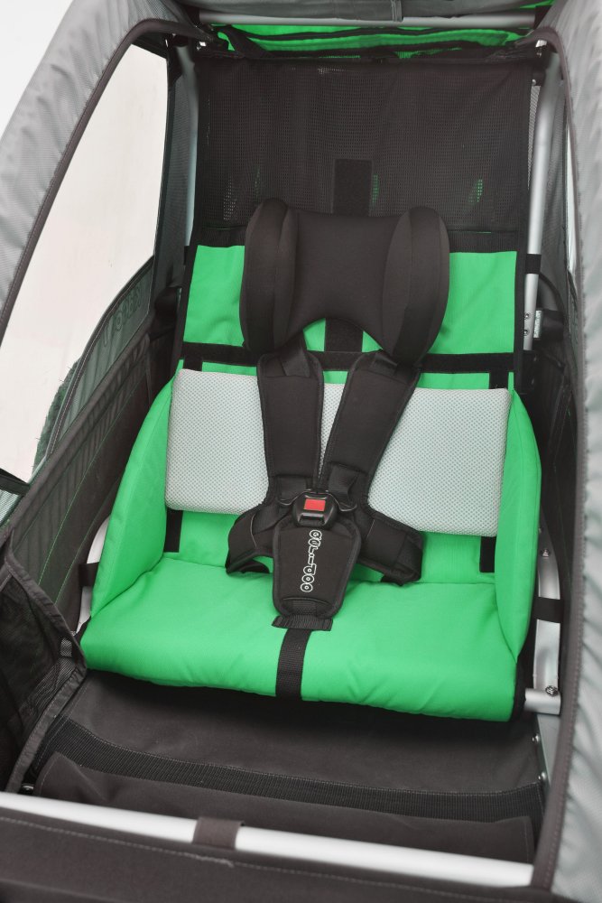 Der Qeridoo KidGoo-1 ist ein Kinderfahrradanhänger für ein Kind. Der Anhänger ist mit einer einstellbaren Blattfederung und Scheibenbremsen ausgestattet. Die Fahrradkupplung und ein Buggyrad mit Jogger-Funktion gehören zum Lieferumfang. Das FX- Klappsystem ermöglicht ein einfaches Zusammenfalten des Qeridoo KidGoo-1 mit nur einer Handbewegung. Ein Augenmerk wurde auf den Transport von Säuglingen gelegt. Mit dem optionalen Adapter ist es möglich eine Qeridoo oder eine Maxi-Cosi Autokindersitzschale in den KidGoo 1 mit einzubauen um die größtmögliche Sicherheit der -Kleinen- zu gewährleisten.