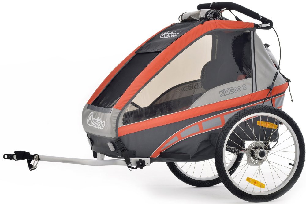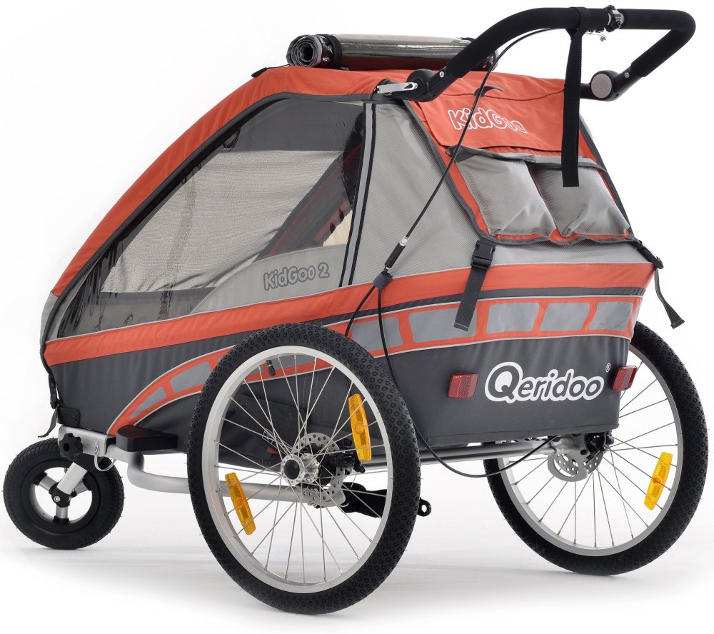Der Qeridoo KidGoo-2 ist ein Kinderfahrradanhänger für zwei Kinder. Der Anhänger ist mit einer einstellbaren Blattfederung und Scheibenbremsen ausgestattet. Die Fahrradkupplung und ein Buggyrad mit Jogger-Funktion gehören zum Lieferumfang. Das FX- Klappsystem ermöglicht ein einfaches Zusammenfalten des Qeridoo KidGoo-2 mit nur einer Handbewegung. Ein Augenmerk wurde auf den Transport von Säuglingen gelegt. Mit dem optionalen Adapter ist es möglich eine Qeridoo oder eine Maxi-Cosi Autokindersitzschale in den KidGoo-2 mit einzubauen um die größtmögliche Sicherheit der -Kleinen- zu gewährleisten. Es ist nur der Einbau einer Autokindersitzschale möglich!