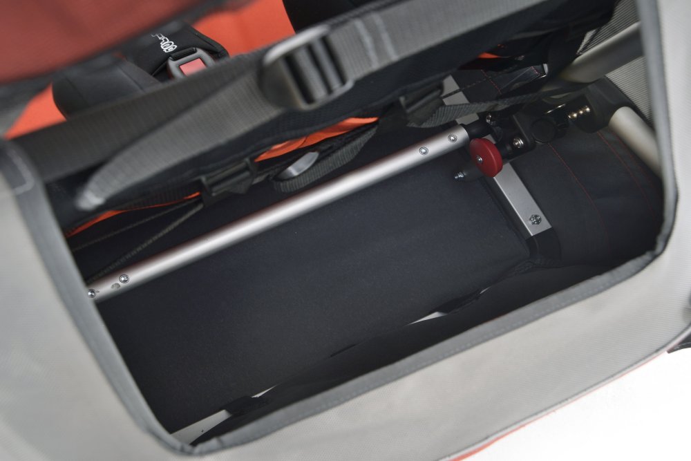 - Wegklappbare Rückenlehne für die Verwendung als Lastenanhänger