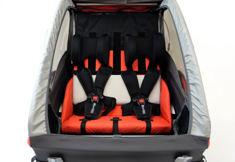 - Kinderfahrradanhänger für 2 Kinder (in Fahrtrichtung sitzend)