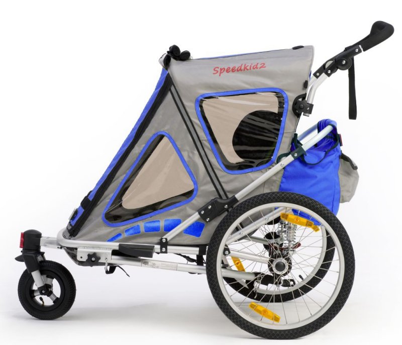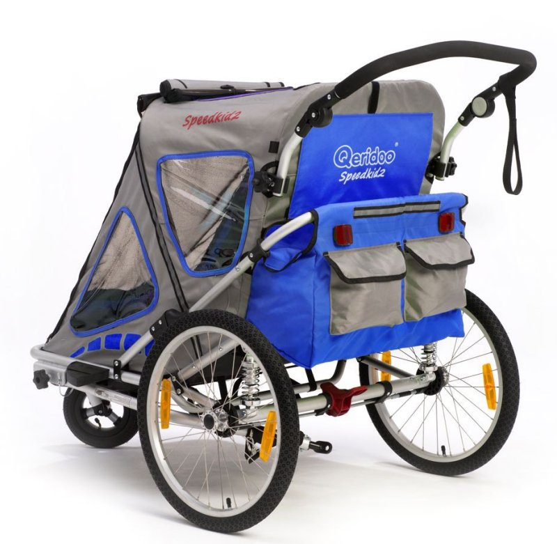 Der Qeridoo Speedkid2 2016 ist ein Kinderfahrradanhänger für ein oder zwei Kinder. Der leichte Aluminium-Fahrradanhänger hat ein sehr kleines Packmaße (25x71x89cm) und passt damit in jeden PKW Kofferraum. Der Anhänger ist mit einer einstellbaren Sprungfederung und Feststellbremse ausgestattet. Die Fahrradkupplung und ein Buggyrad mit Jogger-Funktion gehören zum Lieferumfang. Das FX- Klappsystem ermöglicht ein einfaches Zusammenfalten des Qeridoo Speedkid2 2016 mit nur einer Handbewegung. Der Leichte und sichere Qeridoo Speedkid2 2016 kann man dank des großem Lieferumfangs als Babyjogger, Kinderwagen oder Fahrradanhänger nutzen.