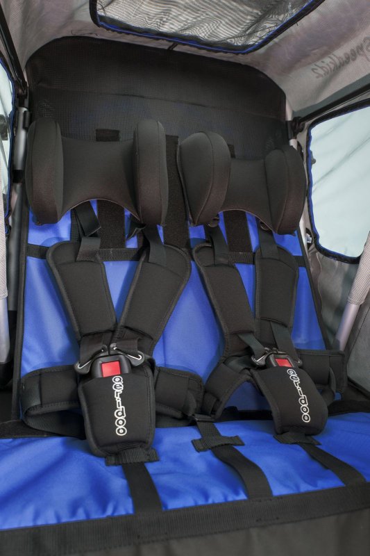 - Gepolsterte 5-Punkt-Sicherheitsgurte mit Schlosssystem, das ein schnelles Ein- und Aussteigen ermöglicht. Gurtsystem für Kinder gemäß ECE 44/03 und §67 StVZO