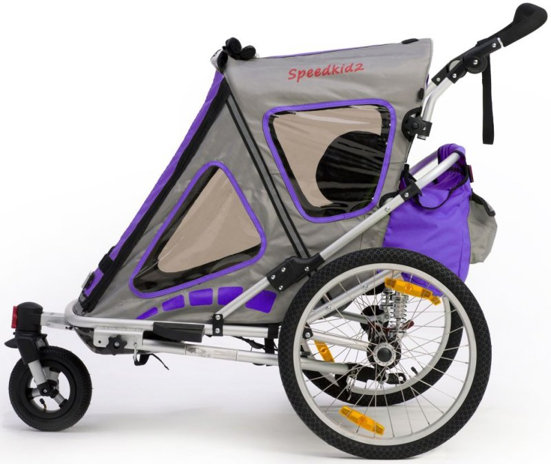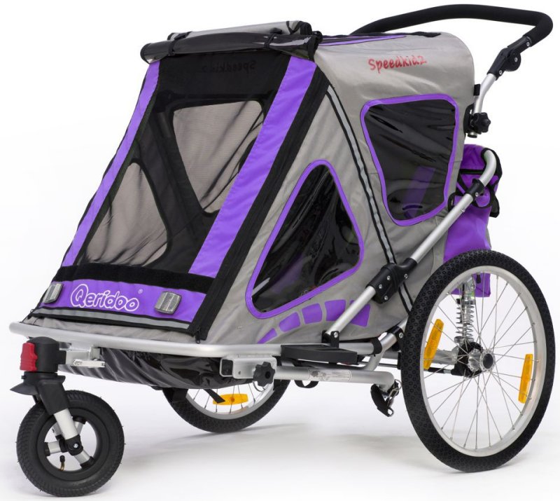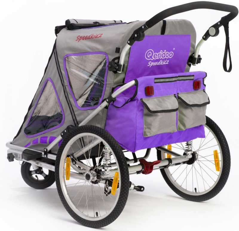 Qeridoo Speedkid2 2016 violett - Kinderfahrradanhänger mit Federung, Feststellbremse und Buggyrad mit Jogger-Funktion