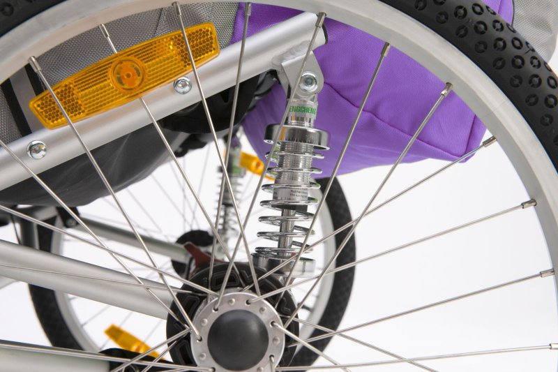 - Kugelgelagerte 20 Zoll luftbereifte Lauf-Speichenräder mit Push-Button-Radbefestigung ( Speichen: Rostfrei, Felge: ALU, Nabe: ALU)
