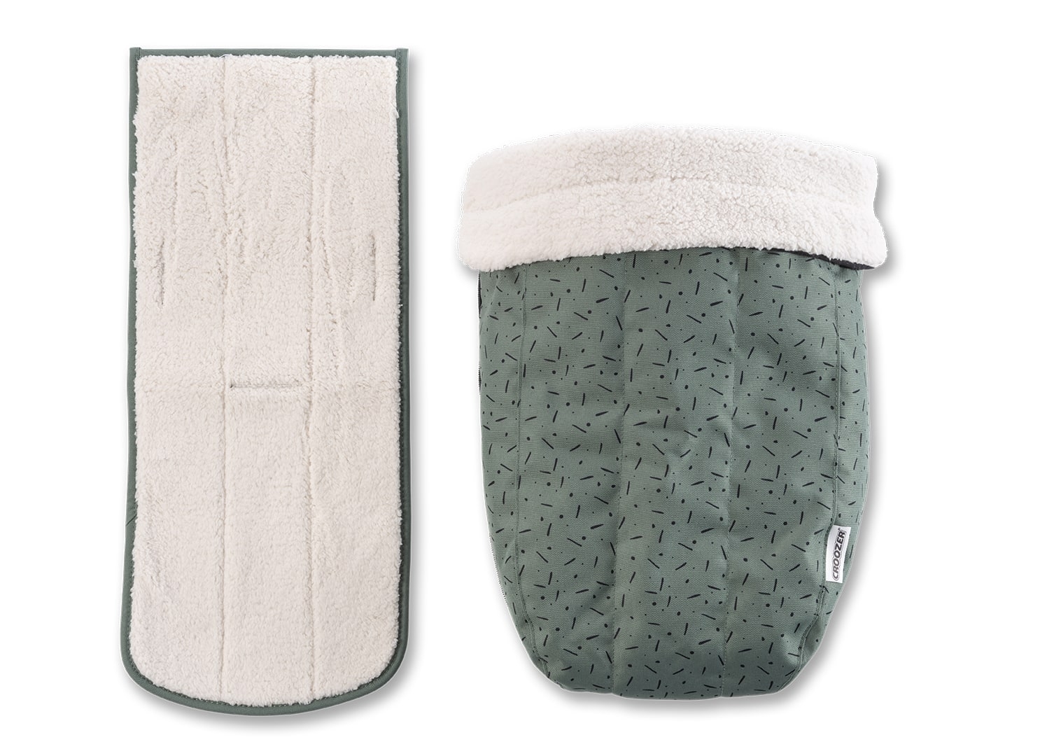 Der gefütterte Winterfußsack wird per Reißverschluss am Babysitz angebracht. Die Fleece-Sitzauflage sorgt für schützende Wärme von unten. Das kuschelige Winter-Set sorgen selbst bei Minusgraden für ein besonders kuscheliges Plätzchen.