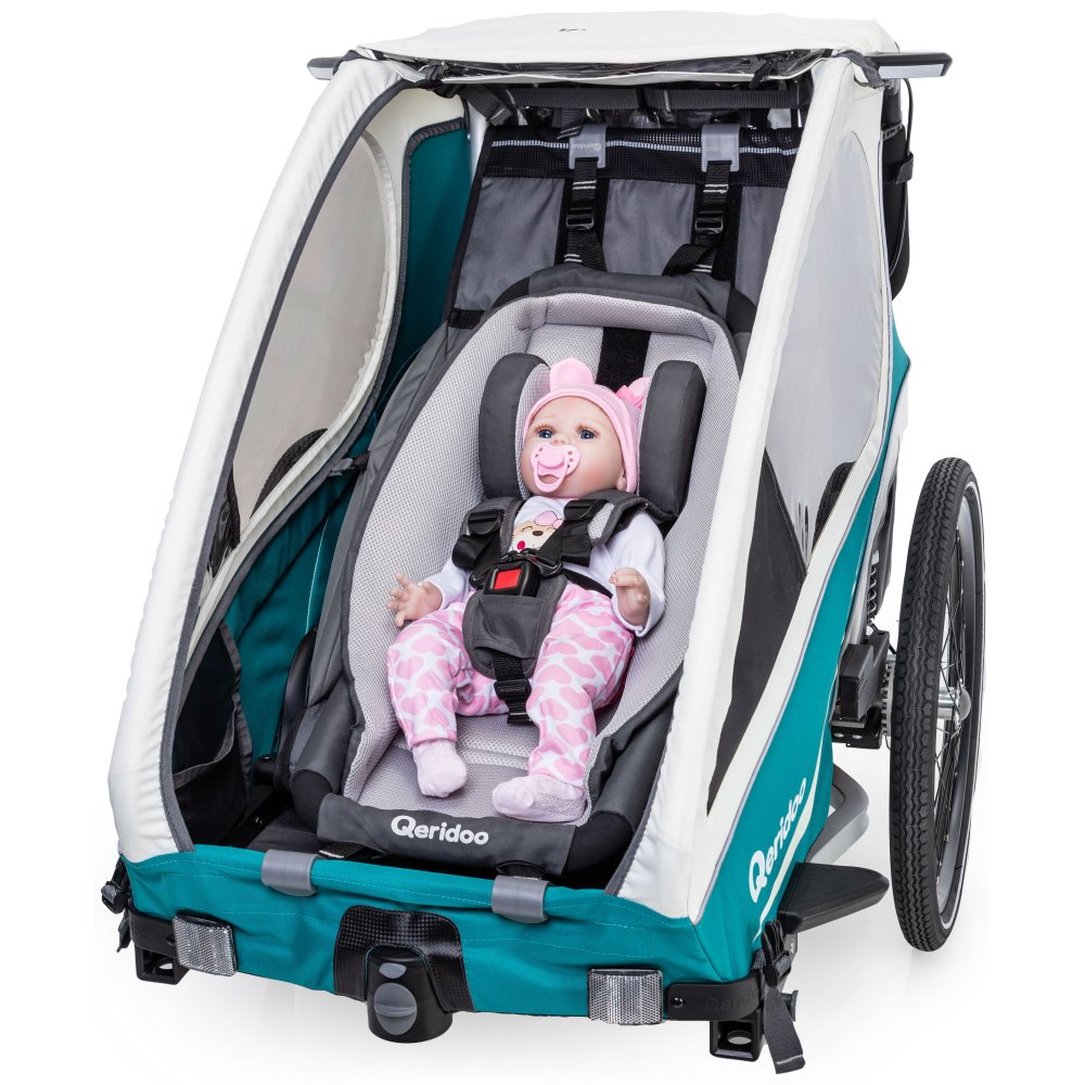 Durch den stabilen Sicherheitsrahmen und den 5-Punkt-Sicherheitsgurt mit Smart-Lock-Funktion, bieten wir einen neuen Sicherheitsstandard beim Transport von Säuglingen. Die zusätzliche Kopfstütze und die nahezu schwebende Lagerung der Hängematte im Qeridoo Sportrex2 (Modell 2018) bieten dem Säugling einen umfassenden Schutz von allen Seiten. Somit wird eine sanfte aber vor allem auch sichere Transportmöglichkeit für ihren Nachwuchs gewährleistet.