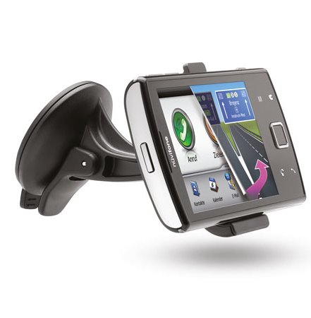- Aktive Saugnapfhalterung, KfZ-Ladekabel und Klebeplatte zur sicheren Montage des nüvifone A50 im Auto