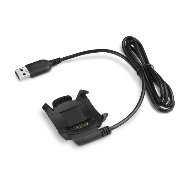 Holen Sie mit dem Garmin USB Kabel das Beste aus der Garmin Descent Mk1 heraus. Setzen Sie die Garmin Descent Mk1 in die Ladeklemme ein, und schließen Sie sie über die USB Schnittstelle an den Computer oder das optionale Netzteil an, um den Akku zu Laden. Das USB Kabel kann auch zum Übertragen zwischen der Garmin Descent Mk1 und dem Computer verwendet werden.