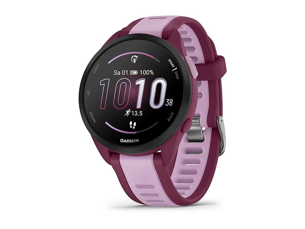 Garmin Forerunner 165 Music (010-02863-33), Fitness Smartwatch mit Schnellwechsel 20 Silikon Armband rot/rosa