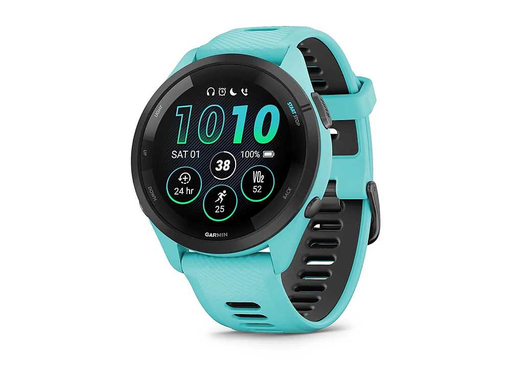 Garmin Forerunner 265 (010-02810-12), Fitness Smartwatch mit Schnellwechsel 22 Silikon Armband türkis/schwarz