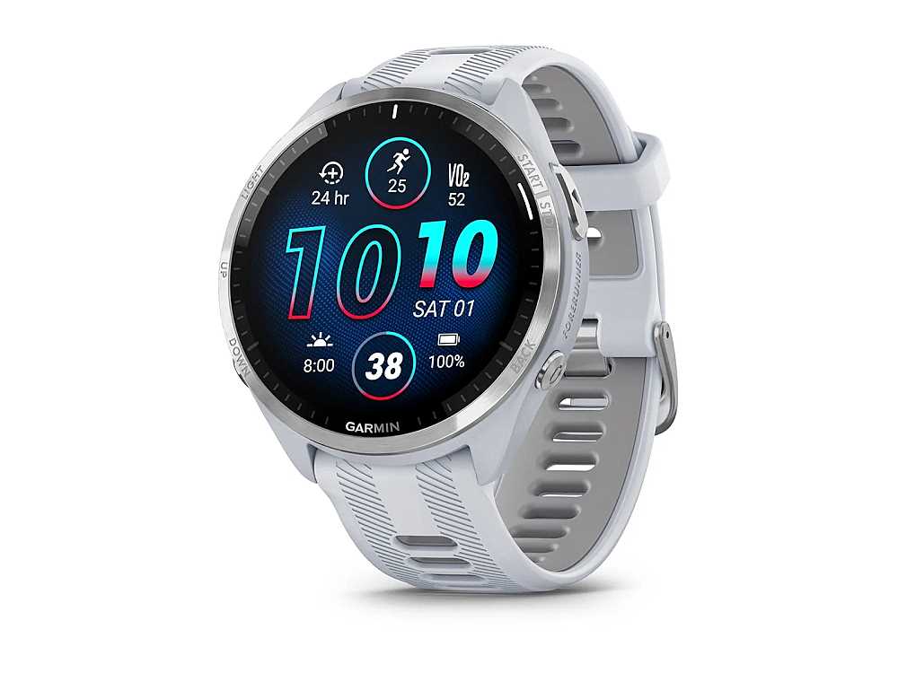 Garmin Forerunner 965 (010-02809-11), Triathlon Smartwatch weiss/titanium Titan mit QuickFit 22 Silikon Armband weiss/grau